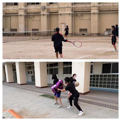 軟式野球部とサッカー部、硬式テニス部の部活動、女子バスケットボール部の様子です☆