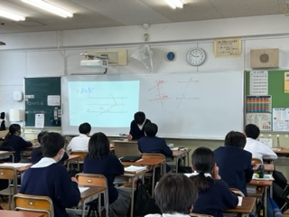今日の授業☆2年生数学科10月30日 公開日 2023/10/30 更新日 2023/10/30 お知らせ ?錯角と同位角について、練習問題に取り組みました☆数学科では、グループ学習で生徒が先生役となり他の生徒の学習を支援するリトルティーチャーを活用しています。写真は、問題の解答を根拠をあげ説明をしている場面です。全員が納得できましたね。素晴らしい♪ いいね(0)