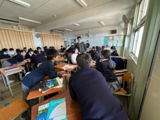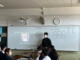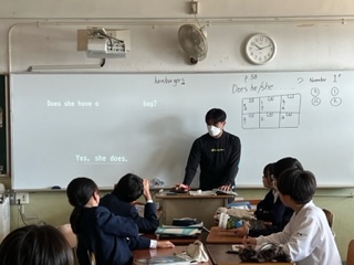 今日の授業☆1年生英語科11月1日part1 公開日 2023/11/01 更新日 2023/11/01 お知らせ 一般動詞haveの疑問文について学習しました☆ C-NETの先生が、ホワイトボードに映し出す質問に、班のメンバーが協力して解答するスタイルで授業が展開されていました。 生徒たちは互いに考えを出し合っていましたよ♪ Does she have a ( ) bag? Yes,she does. いいね(0)