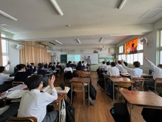 江戸幕府の対外国政策ついて学習しました☆幕府はある時期を境に対外国政策を変えますが、その理由についてまわりの生徒と考えをまとめ発表していました。生徒たちは、まわりと対話しながら考えをまとめていくことに慣れてきましたね♪