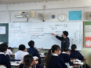 今日の授業☆1年生理科11月2日 公開日 2023/11/02 更新日 2023/11/02 お知らせ 地震計による記録について学習しました☆ 2種類のゆれについて、生徒が自分の身体を使い実演してくれていました。非常にわかりやすいかったですね! いいね(0)