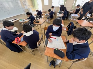 今日の授業☆3年生数学科11月8日 公開日 2023/11/08 更新日 2023/11/08 お知らせ 平行線と線分の比について、学習プリントを使い振り返りを行いました☆ リトルティーチャー達が大活躍です♪ いいね(0)