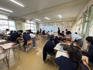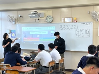 今日の授業☆3年生英語科11月8日 公開日 2023/11/08 更新日 2023/11/08 お知らせ C-NETの先生が、ホワイトボードに映し出す質問に、班対抗で競い合うスタイルで授業が展開されていました☆これまで学習してきた文法や構文が質問されていて、楽しみながら復習していました ♪ いいね(0)