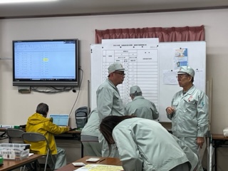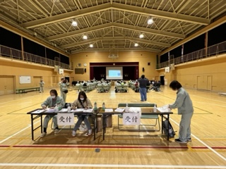 町会役員と防災リーダーの方々が、各家庭で掲示された防災タオルの状況をもとに、町内の被害状況の調査と整理を行い、支援体制の確認や避難所の設置するところまでの訓練しました。