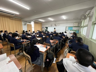 期末テストが返却されました☆先生から、各設問ごとのポイントについて、丁寧な解説がありました。間違ったところは各自しっかり復習しておきましょう!