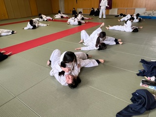 今日の授業☆2年生保健体育科11月29日 公開日 2023/11/29 更新日 2023/11/29 お知らせ 女子柔道の授業の様子です☆ 固め技について実践練習をしました。写真は、袈裟固めをかける側と返す側に分かれて取り組んでいるところです♪ いいね(0)