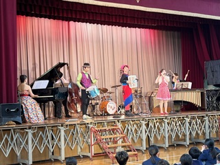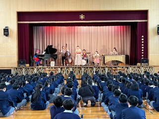 今日の5、6時限目な体育館で芸術鑑賞が行われました☆今年度はアンサンブル・レネットをお招きして素敵な演奏を聴かせていただきました。途中生徒が参加する場面も用意されていて、生徒たちは終始楽しく鑑賞できました♪