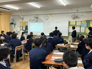 研究授業☆2年生数学科12月7日 公開日 2023/12/07 更新日 2023/12/07 お知らせ 大阪市教育センタースクールアドバイザーの先生にお越しいただき、研究授業を行いました☆ 午後からの、がんばる先生支援公開授業のプレ授業として取り組み、さまざまな角度からアドバイスをいただきました♪ いいね(0)