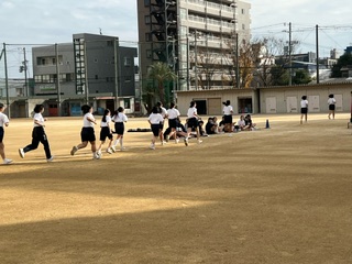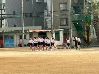 2年生女子が持久走に取り組みました☆生徒たちは、まわりのクラスメイトからの応援を受けながら一所懸命走っていました♪