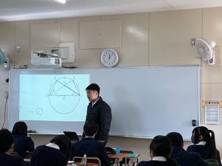 円周角の定理の利用し、証明問題に取り組みました☆生徒たちは、解き方のテクニックを駆使して、順序立てて解いていました♪