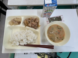 【鶏肉の甘辛焼き みそ汁 ダイコンの煮もの
