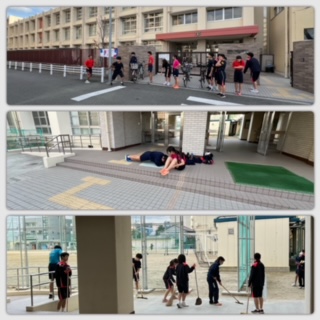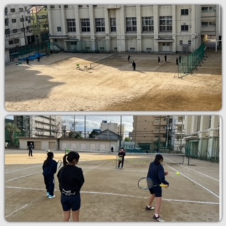グランドでは硬式テニス部が、校舎まわりでは陸上競技部が元気に活動しています☆