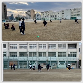 グランドでは、今日も軟式野球部と硬式テニス部が元気に活動しています☆
