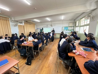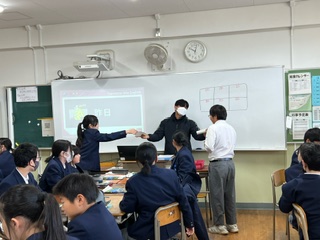 今日の授業☆1年生英語科12月21日 公開日 2023/12/21 更新日 2023/12/21 お知らせ C-NETの先生とのティームティーチングの授業です☆C-NETの先生から出願される質問に、班の仲間と協力して解答していました♪ いいね(0)