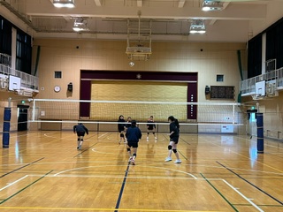 体育館ではバレーボール部が、グランドでは軟式野球部が元気に活動していました♪