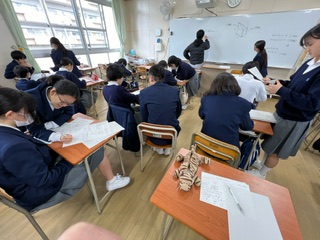 先生からの解説のあと、生徒たちは間違ったところの振り返りを行いました。わからないところは、先生や周りの友人の助けを借りながら、全員満点を目指します♪