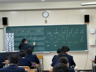 今日の授業☆1年生音楽科1月23日 公開日 2024/01/23 更新日 2024/01/23 お知らせ 音符と休符の長さと種類について学習しました☆ 楽譜を正しく読めるように頑張りましょう♪ いいね(0)