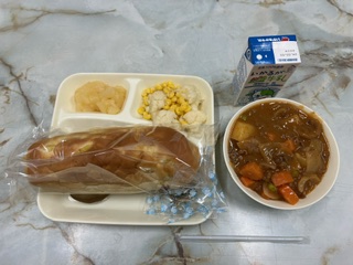 カリフラワーとコーンのサラダ 洋梨 牛乳】