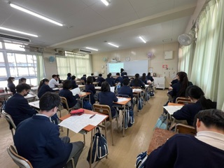 学年末テストが返却されました☆私学入試まで10日あまり、生徒たちは先生の解説に集中しています♪