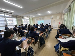 道案内の場面のリスニングテスト行いました☆出来はまずますだったようです。その後、日本の貿易の移り変わりについてのレポートを教材として学習しました。長文ですが、生徒たちは集中力を切らさず頑張っていました♪