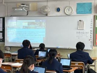 今日の授業☆1年生社会科2月20日 公開日 2024/02/20 更新日 2024/02/20 お知らせ 各自が調べた戦国時代の人物について、パワーポイントにまとめたものを、一人ひとり発表し合いました☆内容だけでなく、発表の仕方も上手くなってきましたね♪ いいね(0)
