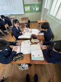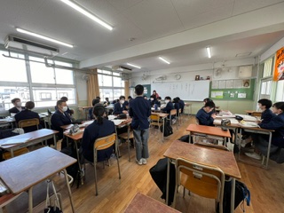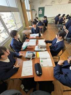 メロスの人物像を理解をテーマに、みんなで考えを交流し合う授業でした。生徒たちは、自分の考えや班でまとめた考えを、根拠をもって説明していました♪