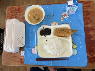 【イワシのフライ みそ汁 牛ひじきそぼろ
