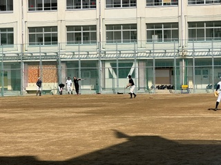 グランドでは軟式野球部が、守備力強化のため、シートノックに取り組んでいます☆