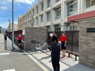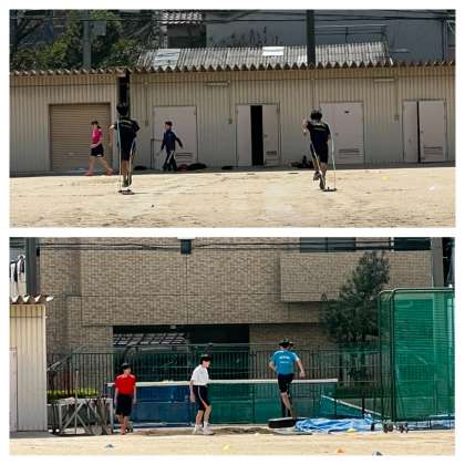 陸上競技部がグランドと校舎まわりを使い、種目別でトレーニングをしています☆