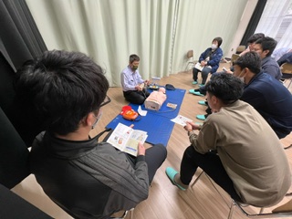 校内研修会(救命救急講習会)☆4月3日 公開日 2024/04/03 更新日 2024/04/07 お知らせ 平野消防署の方々にお越しいただき、本校多目的室で救命救急講習会が、開催されました。心肺蘇生法の手順を確認したあと、いくつかのグループに分かれて実践を行いました。教職員は、緊急事態において、しっかりと対応できるよう、真剣に取り組んでいました。 いいね(0)