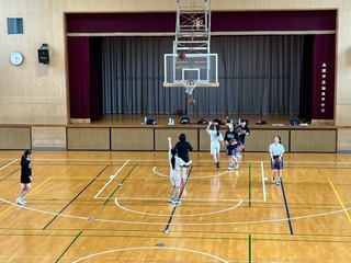 体育館では女子バスケットボール部がシュート練習に取り組んでいます☆