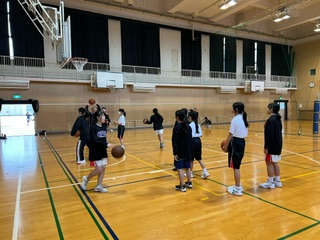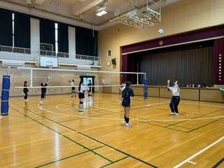 体育館ではバレーボール部と女子バスケットボール部が活動しています☆