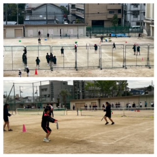 運動場ではサッカー部と硬式テニス部が活動しています☆