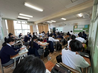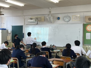 楷書について学習しました☆写真は楷書のポイントについて、生徒が発表しているところです♪