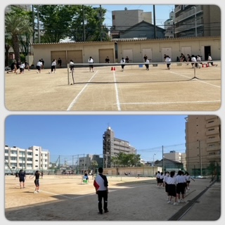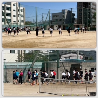 運動場では、硬式テニス部と陸上競技部が活動してします☆