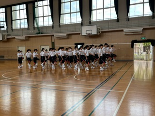 男女とも集団行動の姿勢や方向転換などの学習をしました☆