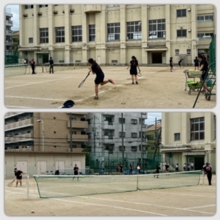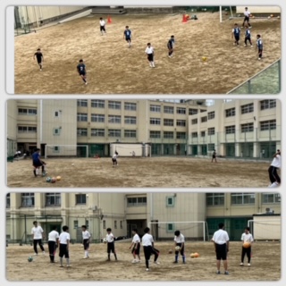 運動場では陸上競技部と硬式テニス部、サッカー部が活動しています☆