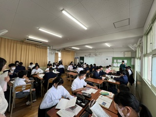 今日の授業☆3年生国語科4月25日 公開日 2024/04/25 更新日 2024/04/25 お知らせ 井上ひさしの「握手」を学習しました☆ まず、展開に着目しながら作品を読みました。 次に、一人ひとりが考えたことを班の仲間と伝え合いました♪ いいね(0)