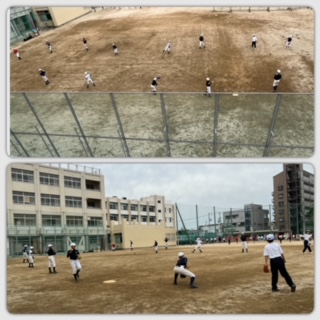 運動場では陸上競技部と軟式野球部が活動しています☆