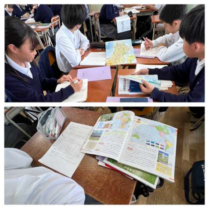 今日の授業☆2年生社会科4月30日 公開日 2024/04/30 更新日 2024/04/30 お知らせ 日本の東北地方の地形や気候について調べ学習したことを班ごとに発表しました☆ 生徒たちはみんな積極的に取り組んでいましたよ♪ いいね(0)