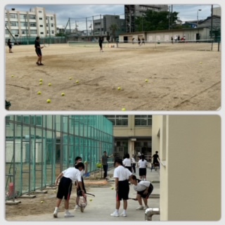 運動場では軟式野球部と硬式テニス部が活動をしています☆