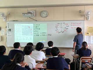 今日の授業☆3年生社会科5月1日 公開日 2024/05/01 更新日 2024/05/01 お知らせ 地形図の読み取りについて学習しました☆ 写真は縮尺をもとに、実際の距離を計算しているところです♪ いいね(0)