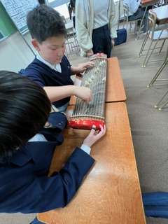 日本の伝統的和楽器である箏について学習しました☆今日は、実際に箏の音色を調べました♪