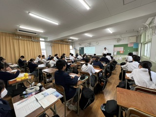 今日の授業☆1年生英語科5月1日 公開日 2024/05/01 更新日 2024/05/01 お知らせ 「動詞+人+もの」(人に、ものをする)の学習をしました☆教科書には、動詞として、show、give、buy、teachが紹介されています。家でもこれらの動詞を使って練習しておきましょう♪ いいね(0)