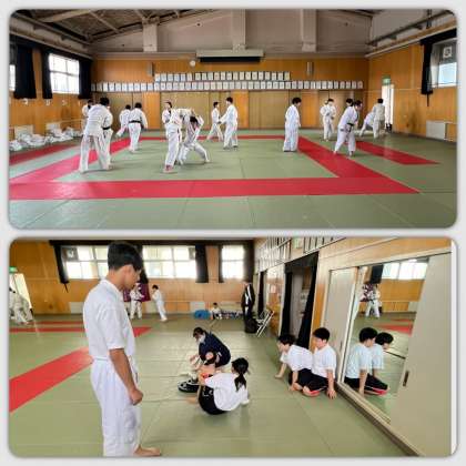 体育館では女子バスケットボール部が、格技室では柔道部が活動しています☆