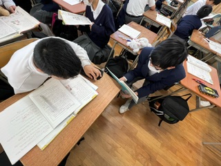 今日の授業☆2年生英語科5月17日 公開日 2024/05/17 更新日 2024/05/17 お知らせ 「If (もし〜ならば)」の構文を学習しました☆ 写真は、上記の構文を含む教科書の会話文を、ペアで読み合っているところです。なかなかいい発音です♪ いいね(0)