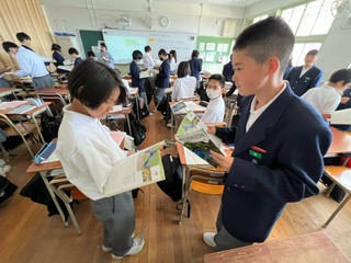 一般動詞の疑問文とそれに対する答え方について学習しました☆写真は、教科書の会話文を二人ペアで読み合っているところです。家でも繰り返し練習してくださいね♪