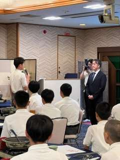 その後、退所式を行いました。生徒代表あいさつのあと、ホテルの代表の方からお話をしていただきました。一泊二日お世話になりありがとうございました♪