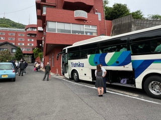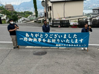 長崎ブルースカイホテルのスタッフの皆さん、お世話になりました☆バスは一路平和記念公園へ向かいます♪