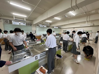 調理実習に向け、全員全力で清掃に取り組みました☆